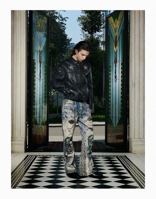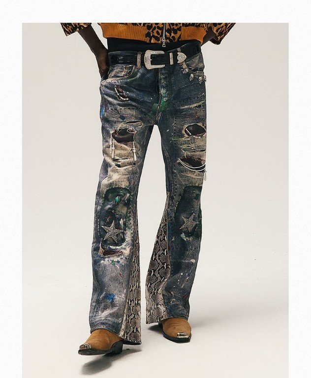 GLACIERBOY丨"RAP STAR" SERIES 3D Printed Snake Pattern Waxed Jeans